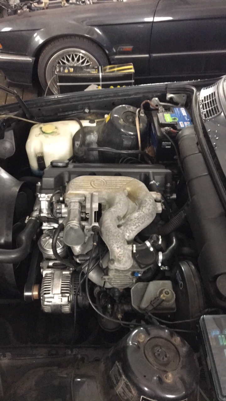 Uhhh, hakkab nagu lõpule jõudma see saaga. Loomulikult sai kõikidest M42 mootoritest võetud see kõige lõbusam swappida, ehk viimane aasta ja õnnistatud EWS-iga ja DISA-ga, lisaks veel automaatkastiga isendilt. Igaljuhul, kone on aiste vahel ja toimib. Summuti veel kombineerida ja mõned pisiasjad lõpetada (süütepooli kinnitus nt jne). Uskumatu, kuidas esmapilgul pea komplektsel mootoril võib juppe puudu olla ja kui kuradi keeruline neid leida võib olla. Garages vedeleb M50/52, M40 ja M60/62 juppe erinevaid igasugu nii endal kui enamvähem igal teisel BMW-sid omanud kodanikul. Hetkel jääb veel auto e36 kollektoriga ja toimiva DISA-ga, aga ilmselt tulevikus vahetab ikkagi e30 kolde peale ringi, klapikambrikaant ja pihustilatti lihtsalt vastavat enam ei viitsinud otsida, seetõttu ei ole seda detaili ka väga "uueks" viitsinud välimusel ajada. Muidu sai tehtud korralik remont (kõik tihendid, andurid, süütesüsteem, lõdvikud, voolikud jnejne) ning ka kõik seibideks võetud ning puhastatud, ning ka vastavalt vajadusele uute juppidega komplekteeritud. Esimene testring ainult koldega mööda töökojahoovi oli päris okei. Päris terav tundub, ilmselt seal ka oma osa ühemassilisel hoorattal. Paras peavalu oli ka rihmaliini ja õlivardatoru mahutamine, lõpuks sai tehtud viimane M50 omast, nii sai ta paigutada sedaviisi, et reaalselt on ka võimalik õlitaset kontrollida. Juhtmestik sai e30-le sobiv ja võimalikult originaalilähedaselt tehtud, kaalusin ka COP upgrade-i, kuid tundus ikka ilusam jätta KKK peale too plastikaas alles. Hiina diag suutis ka ajuga ühendust võtta, niiet see osa sai vist ka hästi. Käiguhoovastik jms. sai ka uued detailid. Shortshifterit küll ei teinud, kui kõik jupid hoovastiku uued panna, on täitsa okei ka selle originaalkangiga mööda salongi ringi sõuda ja kastis hammasrattaid segada.