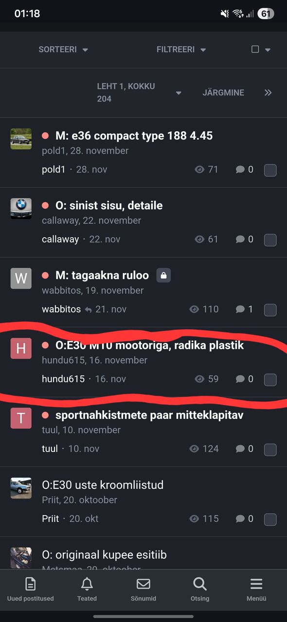 Viimase suurema uuendusega tuli foorumile väike lisa, mida osad on kindlasti juba märganud aga mõtlesin kirjutan igaks juhuks ka neile, kes pole veel märganud. Nimelt alamfoorumite ja teemade avamiseks ei pea mobiilis sihtima enam täpselt pealkirja, et alamfoorumit või teeemat avada. Vajutades ükskõik kuhu terve rea peal, avab soovitud teema. Loodan teeb kasutamise natukene mugavamaks.