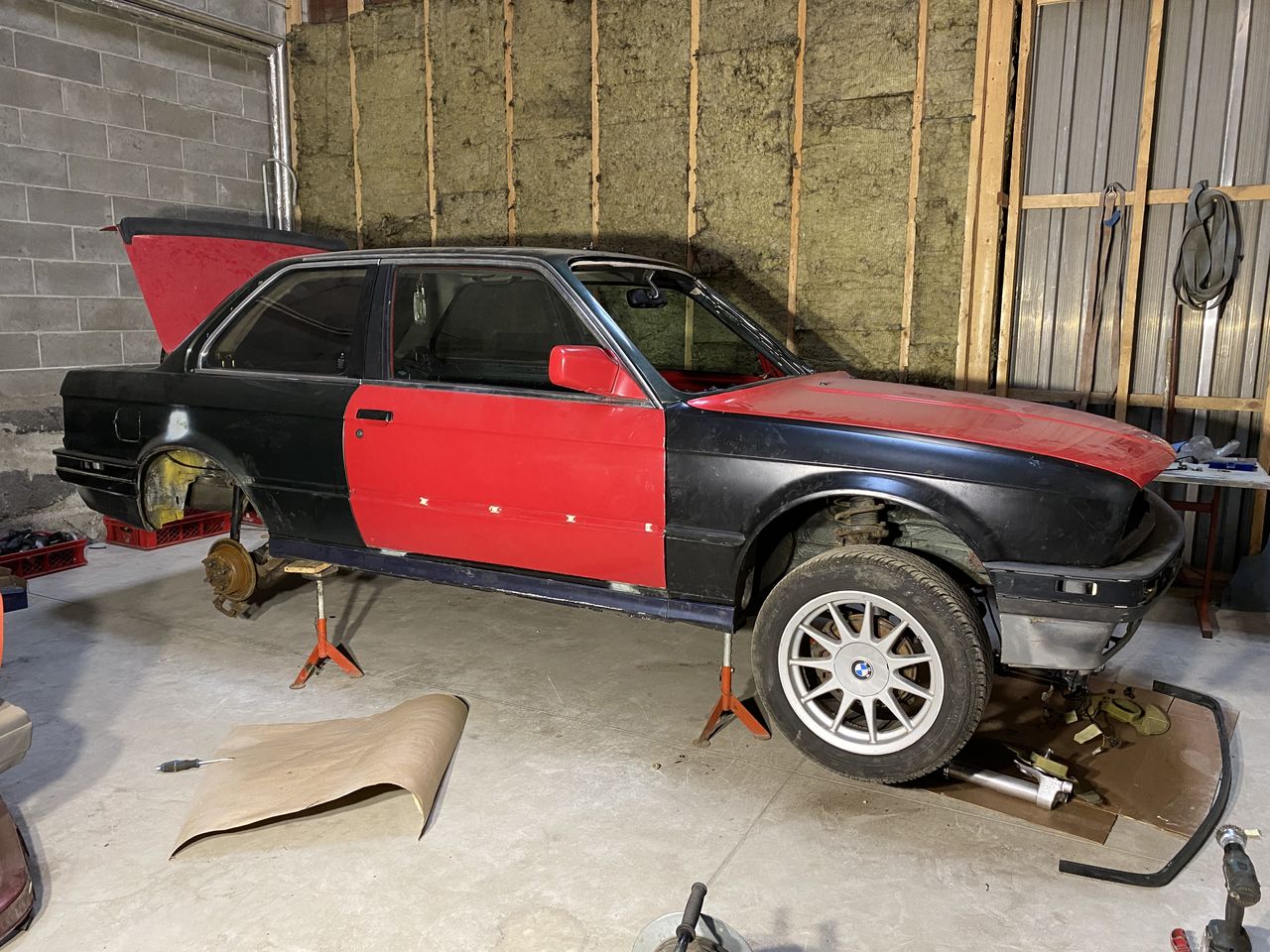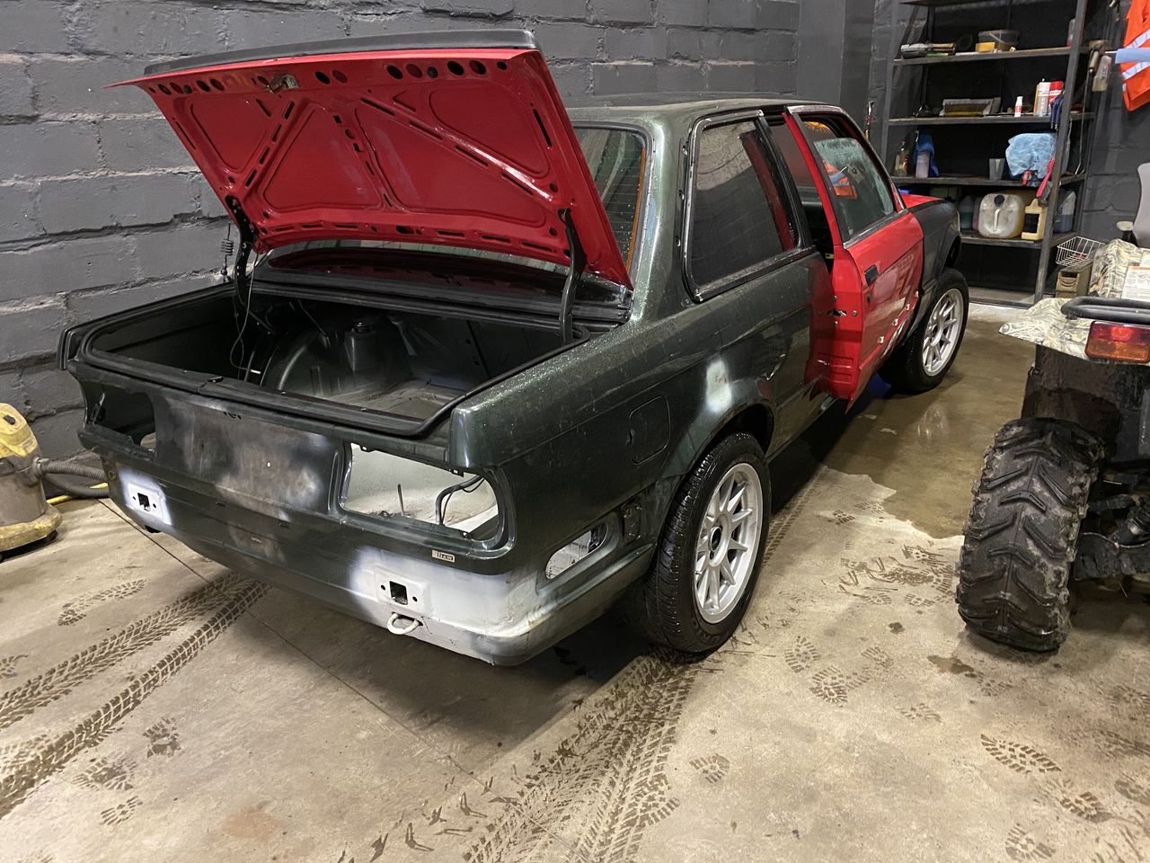 Sai täna mõningad tunnid töökojas veedetud jälle. Tulemuseks katkine juhiukse luku kronstein, tahtsin paremaks natuke teha aga andis järgi hoopis. Tiivad stanged külge istutma pandud, need B osa tiivad on ikka paras peavalu. Proovisin korraks ka lahtiselt külge karbikatteid et aimu saada milline visuaalselt jääb. Alt tuli tagumine sild, saab värskenduse liivapritsis ja värske värv selga. Lisaks mõned tugevdused keevitama ja uus puksiring + LSD. Ostetud vahepeal korralikum paak mis läbib samuti pritsi ja värvi ning leiab tee autoalla, paagipump, mingeid juhtmeid ja väiksemat kraami. Järgmiseks ootab ees küljekarbi katete külge monteerimine, mootori vahelepanek,E36 latt, esimeste coilide install ja piduritorustiku värskendus. Väike pilt ka kellegi eelmise omaniku loomingust kuidas tagumist otsa kõrgemaks saab teha, vedrude alla oli pandud Vineer. Parimat, Kristjan