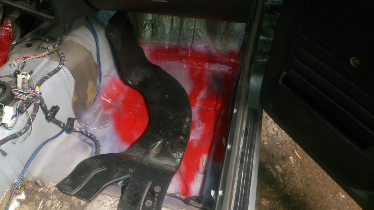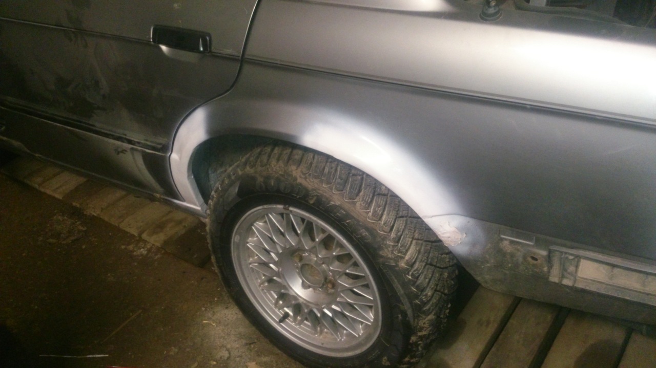 Auto kere on nagunii hukas, ei näe erilist mõtet liigset raha sinna kulutada. Saan selle kokkuhoitud summa pealt mõne teise asja ära tehtud ja ülejäänu läheb paaki kõik. Lisan ka progressist siis mõned pildid, ideaali ärge otsige, ma tõsimeeli ei viitsinud pahteldada. Aga detailid on ilusti roostekrundi jms üle töödeldud, et kohe maha ei mädaneks. Täna sain põhja alt ka suuremad paigad üle kohendatud ning krunt peale lastud, homme õhtul peale tööd värvin ära ja siis lähen lähipäevil juba tüv proovima.
