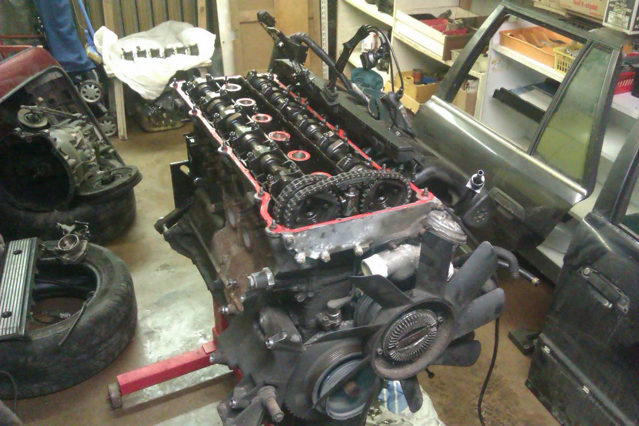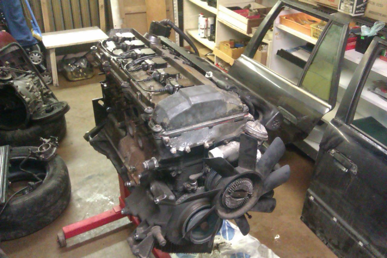 Mootorile sai tellitud kõik uued tihendid. Nagu tavaks, sai siis M50B25 mis esimesest autost järgi jäi ja oli ilma vanoseta võetud sisselaske nukkvõll ja see paigaldatud see väljalaskesse. Eelnevalt muidugi nukkvõlli otsast tuli natuke maha treida, et see mahuks ära ja lühemad poltid. Ülekande kohapealt siis kergem M20 hooratas koos 240mm leevendita sidurikettaga ja Audi AAN korviga. Need sai GTR teeninduses lastud tasakaalustada ja koos BMW 323 siduri survelaagriga. Tänu Rihole sai ka E30 ix pidurivõimendi muretsetud, kuna mootor ei mahtunud ära ka sisselaske kolle ribide lihvimisega. Mootoripadjad tuli Leks-i käest. Oli ka mure mootoriajuga, kuna see oli EWS-ga siis ei saanud uut mootorit ka sellega tööle, jällegi tänu Rihole sai ilma immota aju muretsetud.