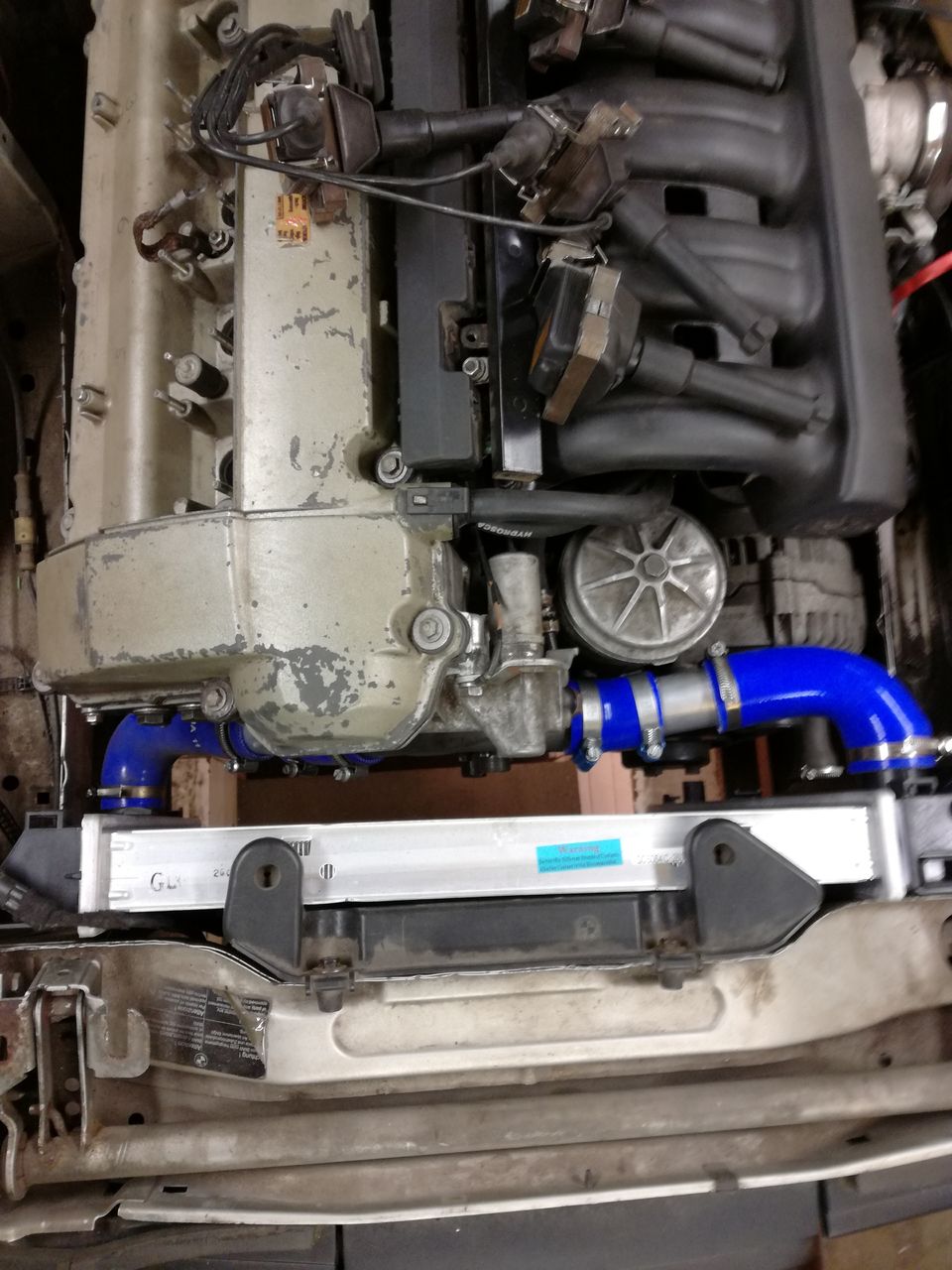 Väljalaske süsteemi tegemisel kasutasin siis ebay torukollet, mis on esialgu katsetuseks, et kui kauaks jätkub. Ülejäänud summuti sai tehtud universaalsest katalüsaatorist ja lõpupütiks sai võetud E36TD pütt. Jahutusradiaatoriks kujunes E36 328 suurem radiaator ja el. ventilaatoriga, mis läbi termolüliti pandud käima kui mootori temperatuur jõuab 92 kraadini. Suured tänud Muffkale, kes aitas ka väljalaske nuka paika panna ja mootor tööle. Ja tänud Rihole, kes majandas mootorijuhtmestikuga. Sel suvel peaks siis saama ringi sõita juba