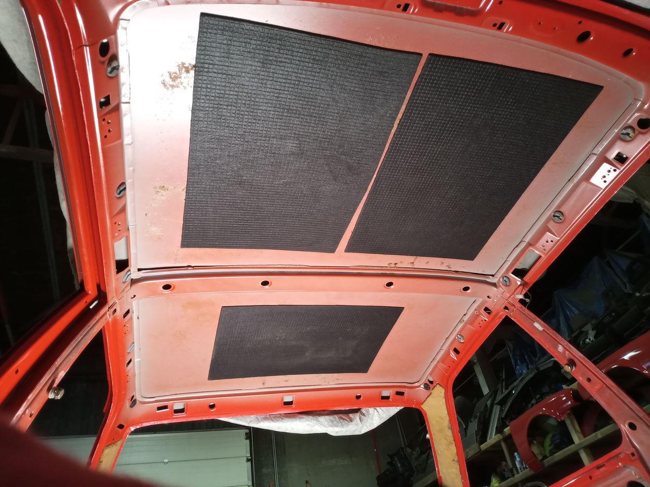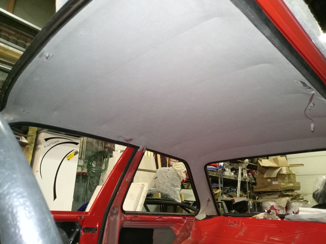 10. Pole päris tühja passitud. Sai magamise ajast mõned tunnid varastatud ning natuke sisemusega tegeletud. Lakke liimisin mõned pigimatid, et woofer katuseplekki ei pläristaks. Mõtlesin, et mis see lagi siis paika panna on. Aga lõpus jäid ikka kortsud kuhugi ja nii ta käis lahti-kinni ca 3h, kuni enamvähem rahul tulemusega. Sisu tooni otsustasin ka natur või beež (või misiganes ta on) teha. Sobis punasega päris hästi ja must liiga meinstriim jälle