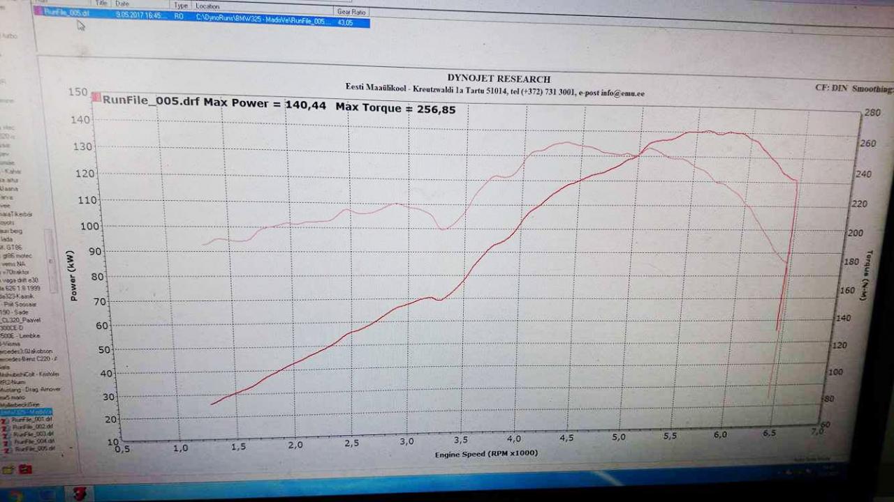 1. Ammu pole rääkinud aga räägiks siis kõik algusest ära. M20 remontimisest sai isu täis ja kuna Madis pakkus ühte M50 stroker mootorit, siis sai otsustatud, et võtan selle ligi ja müün M20 mootori maha. Vahetustööd algasid 2016 sügisel ja kuna mul endal aega nappis, et kõik puuduolevad asjad juurde otsida (e34 karter, õlivõttur jms), siis lõpetatud sai tööd alles 2017 mais. 2016 sügisel olid küll kõik suuremad tööd tehtud ja mootor füüsiliselt vahel, aga lõppviimistluse andis Madis 2017 aprillis ja esimene korralikum proovisõit sai alles hiljuti tehtud. Mootori ajaloost suur midagi ei tea peale selle, et tegemist strokeriga. Mis litraaž täpsemalt, ei oska öelda. Edasi viis tee Tartu Maaülikooli dünosse, kus sai jõunumbrid ära mõõdetud. Tulemuseks siis 140kw ja 256nm rattast ehk siis kadusid arvestades 161kw ja 295nm mootorist. Hetkel hakkas korralikult piirama ajutiselt paigaldatud Cold Air Intake, mis on lihtsalt selle mootori jaoks liialt väike ja parim tõmme sai tehtud ilma filtrita sooja mootoriruumi õhuga, seega sinna kadus paar kilowatti ära. Samuti on hetkel all originaal m20 sumbutijooks koos katalüsaatoriga, mis plaanis kunagi suurema asja vastu vahetada. Ilmselt jääb ka sinna korralikult kinni. Äkki keegi oskab rääkida, mis lahendus sellele õhu sissevõtul sinna kõige parem oleks? Nukraks teeb see, et katuse tagumise kilest klaasi suutsin ära lõhkuda kui see aasta esimest korda katust kokku hakkasin voltima. Eks ongi ammu tegemata ja tuleb uus katus tellida varsti. Muus osas tundub igati hea auto ja valmis suve nautima.