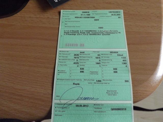 Nii tänasega sai auto tervenisti värvi alla. Homme lisan pildid. ARK-is taheti autot näha, enne nad värvust ei muuda passis.- BMW 324D sedaan 1985