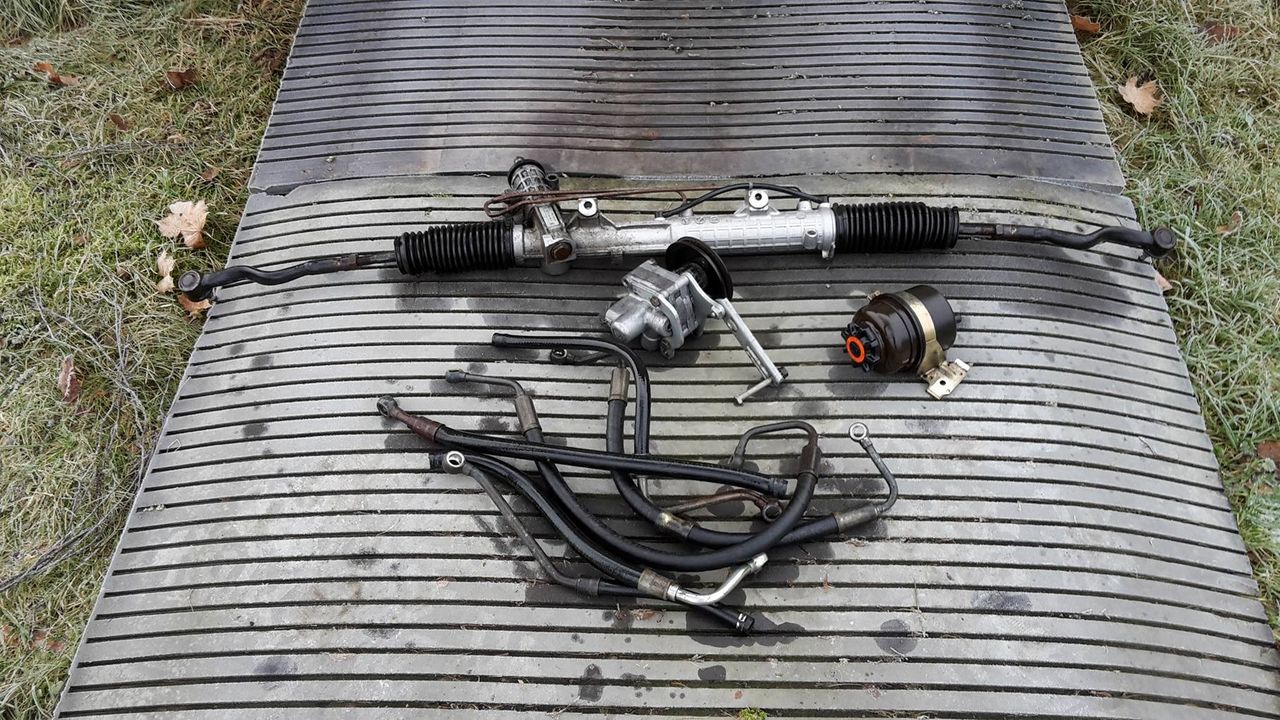 Sai E36 roolilatt alla kruvitud. Riiulis olnud voolikutega mängis ilusti välja, ainuke asi mida riiulist kohe võtta polnud, oli võimuga lati roolikardaan. See sai siis ajutiselt lahendatud E32/E34 osadest. Mitte just originaalne lähenemine, aga toimiv lahendus ja rool pöörleb kergelt, ilma poomise ja takistusteta. Külge jäi veel panna rihmaratas. Siis rihm peale, õli sisse ja saab näha, kas sai hea