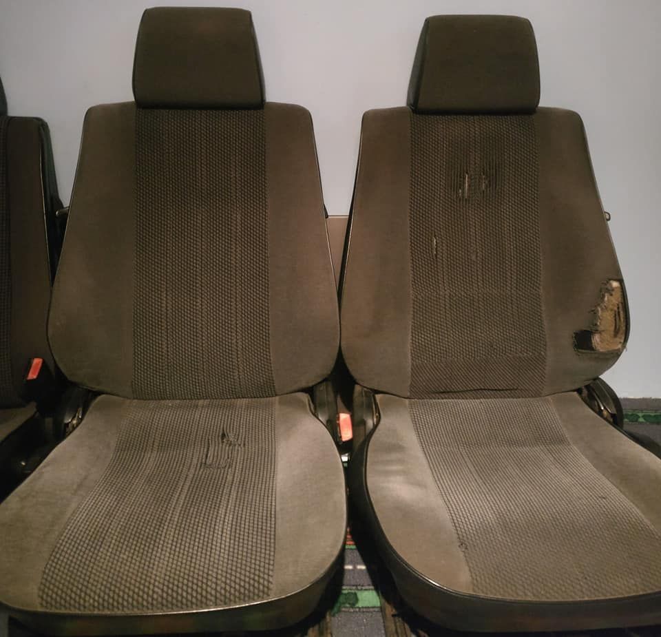 Õnnestus hankida ka teised esiistmed. Saab ehk neljast 2 korralikku kokku kompunnida. Riie läheb enda ruuduline ja raamid ning mehhanismid komplekteerib neljast kokku. Kui laiali võtan, siis on näha, kas tahavad keevitamist ka kuskilt saada jne. Doonoritelt jääb üle ühe istme jagu riiet, mis paistis esmapilgul terve. Ühel seljatugi, teisel põhi. Kui kellelgi vaja siis võib pakkumise postkasti teha