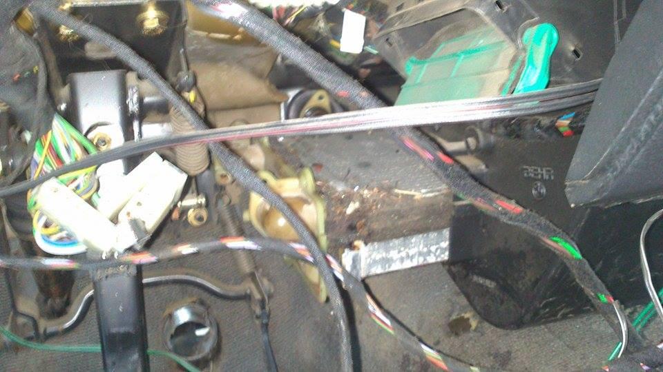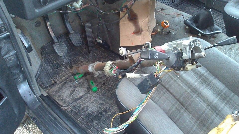 Suurem kepp oli salongiradika vahetusega. Võtsin mootori poolt ventika juurest lahti ja keskkonsooli ning roolialuse katte ära, et kuskilt äkki oleks näha, kas märgab midagi või mis põhjusel aknad kergelt uduseks lähevad. Ei hakanud midagi silma. Siis mõtlesin, et puurin pisikese augu ahju põhja, kui sealt jahutusvedelikku tuleb, siis on asi selge. Nii ka oli ja radikas lekkis. Sai siis edasi lammutama hakatud. Kogutud info ja tarkuste najal, mida netist olin otsinud. Järgmiseks sai küljest katkutud roolisammas. Kuradi jama oli roolikardaani kätte saada, aga lõpuks see õnnestus siiski. Edasi voolikud ja torud lahti radika küljest. Ja siis hakkas pihta. No ei tule see radikas välja nii lihtsalt. Läheb vastu pedaale ja ei kuskile. Uuris neid pedaale ja ei osanud seisukohta võtta, et mismoodi edasi. Kuna kapoti alt oli mul juba lahti kistud, siis mõtlesin proovida seda, mida keegi foorumis oli teinud, et lasen ahju ülevalt lahti. Mõeldud tehtud, pika väänamise ja meelitamise peale tuli see radikas siiski välja, nippa-nappa pedaalidest mööda. Teine radikas sisse ja järgmised jamad, mitte kuidagi ei tahtnud enam soojendusahi oma kohale tagasi minna, tükk aega pusimist, kuni ta lõpuks paika läks ja sai asju kokku panema hakata. Koos muude tegemistega läks korralik päev ära ja mina küll seda radikat mingi 45 minuti või tunniga ära ei suutnud vahetada, nagu kuskil juttu oli Õhtupoole pilte kahjuks enam teha ei märganud selle pusimise käigus. Päeva lõpuks sai auto ikka peaaegu kokku, salongis jäid mõned tükid oma kohale panemata, homme ka päev PRE lisa sai ka eest võetud ja asemele tavaline põlle liist pandud, et oleks viisakam Keskelt natuke katki, aga muidu ok. Kui kellelgi seda lippi vaja siis võib selle paari sixpaki eest ära viia