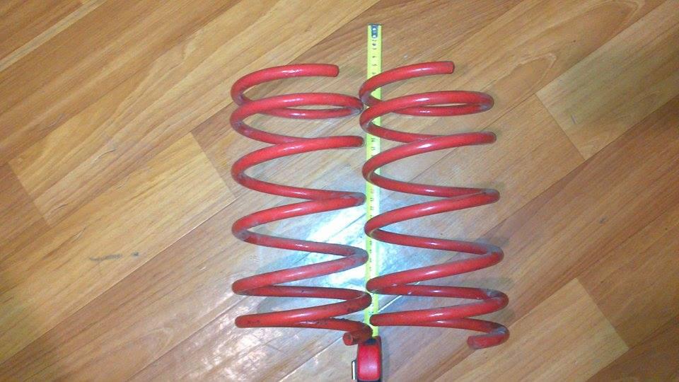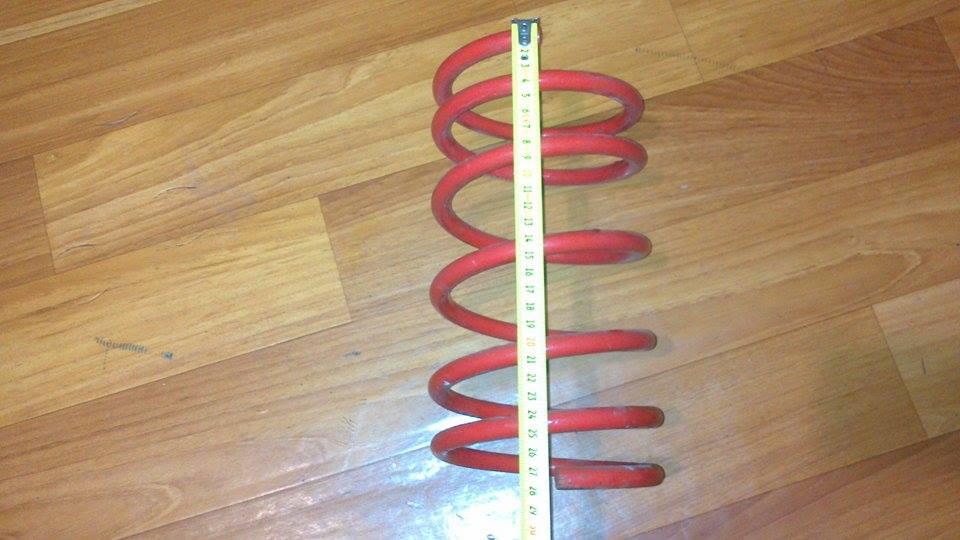 Keerde on neil 6 ja materjali paksus on umbes 12-13 mm (värvi kihiga ja mõõdulindiga mõõtes). Ja vedru otste vaheline pikkus 28cm. Vot ei tea, palju nad madaldada võivad Oskab keegi pakkuda nende andmete põhjal, kas tegu on R4 või pigem R6 mootoriga autole mõeldud vedrudega?