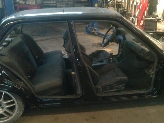 Kõik kaared said rullitud hetkel ei tea kas hakkab kuhugi vastu käima pole veel sõitu saand teha kui aint edasi tagasi garaazis. Tehtud siis nii palju kõik rooste kohad põhja alt ja mujalt, pandud sai e36 roolilatt ja volvo pidurivõimendi, eest kõik puksid, rooliotsad, kettad, klotsid, õõtsad ühesõnaga kõik mis kulub, taga sillaga pole midagi teinud kuna tahan ketastega panna hetkel trummlid. Millalgi kui rohkem raha tuleb siis läheb mtech2 stange ring, palju asju mis veel puudu, värvida veel uksed, kapott ja nipet näpet vidinaid. Salongis veel on juhtmetega segadus täpselt ei tea mis seal tehtud on eelmise omaniku poolt.
