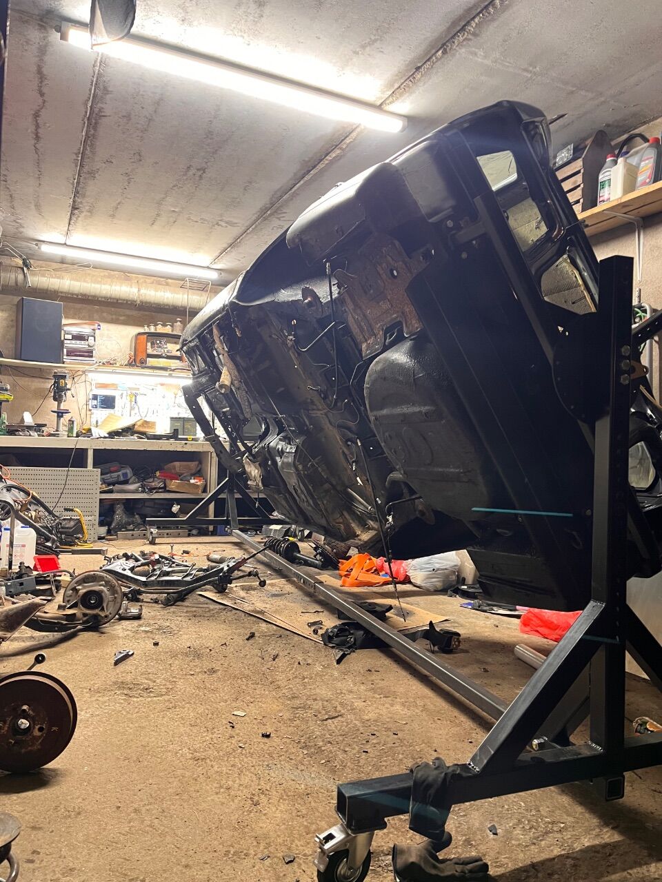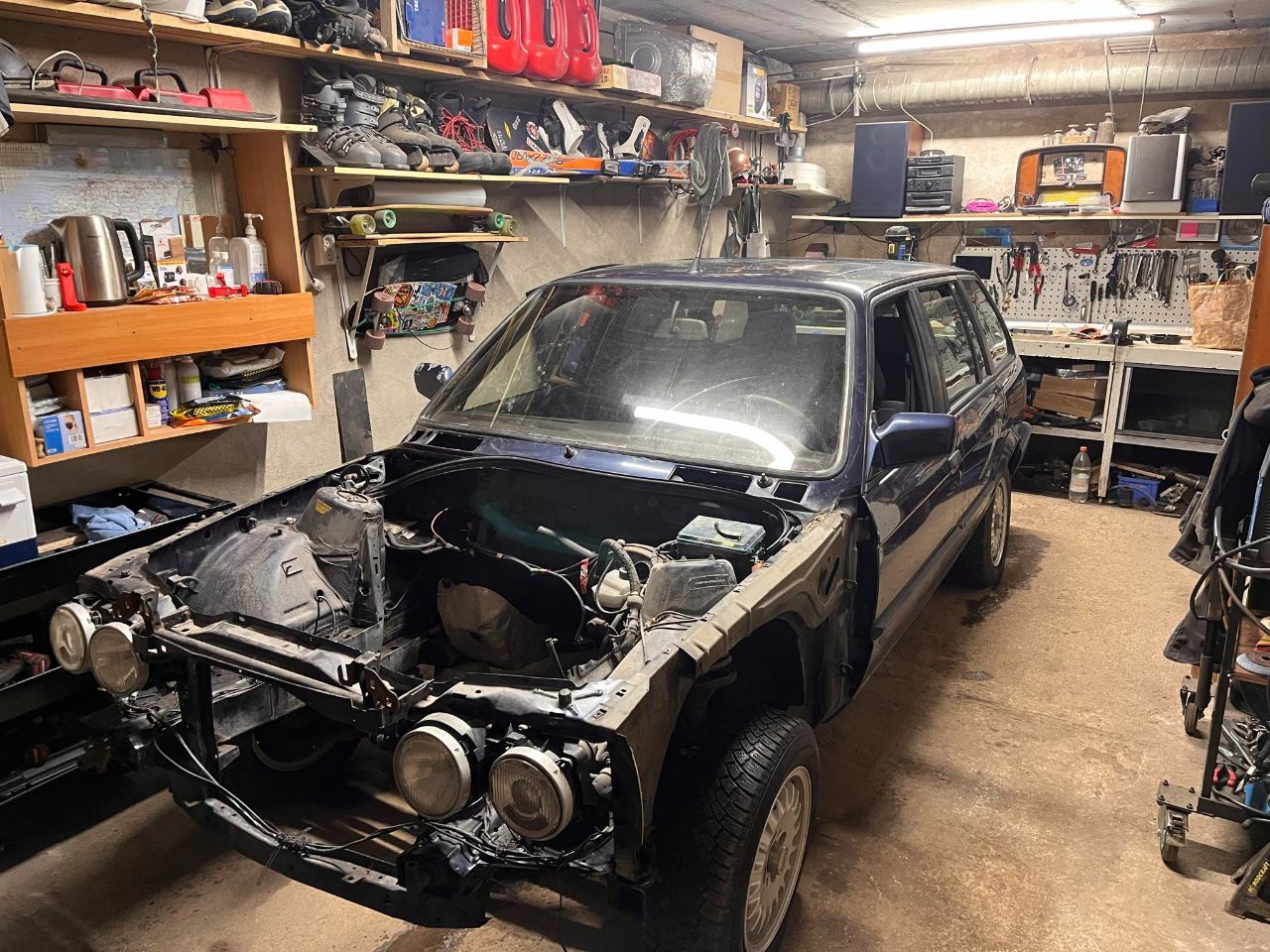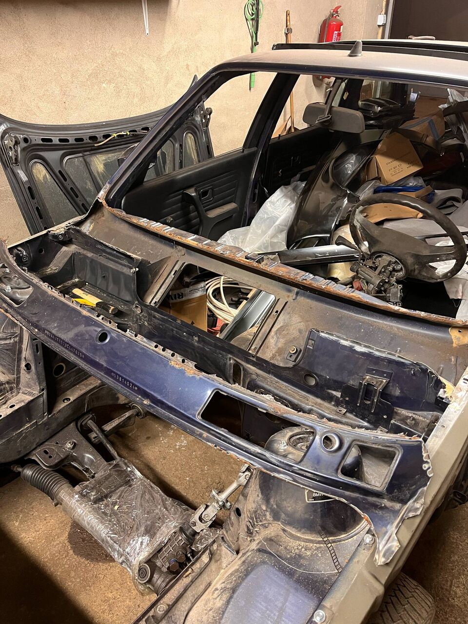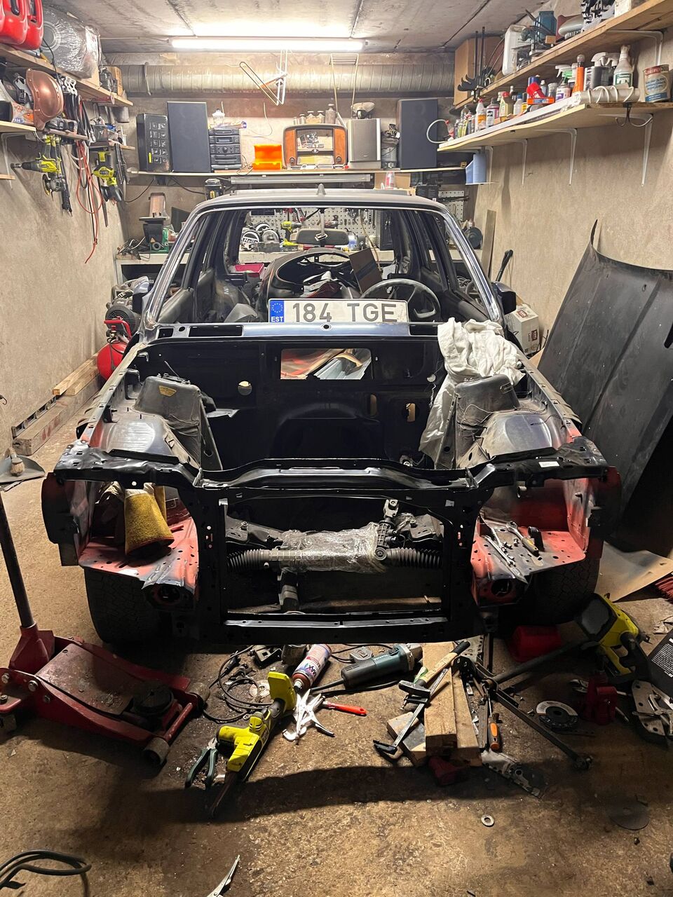 Natukene on jälle nokitsetud. Sisse pekstud lansekad said sirgeks tehtud, ninaraam sai uus. Hetkel käsil aknaraami vahetus, alumine plekk on suht hapu. Karbid on ka osaliselt lahti lõigatud, seal on seis isegi üllatavalt ok võrreldes eelmise autoga. Lisaks sai ka e46 roolilatt külge ning esisilda kõik uus peale stabika kontide ja pukside mis ununesid. Valmis ostetud on ka kütusepaak ja ketassild. Kui kõik on keevitatud läheb veel auto korraks grilli mastiksi jaoks ning peale seda vast saab ka taastatud tagasilla alla.