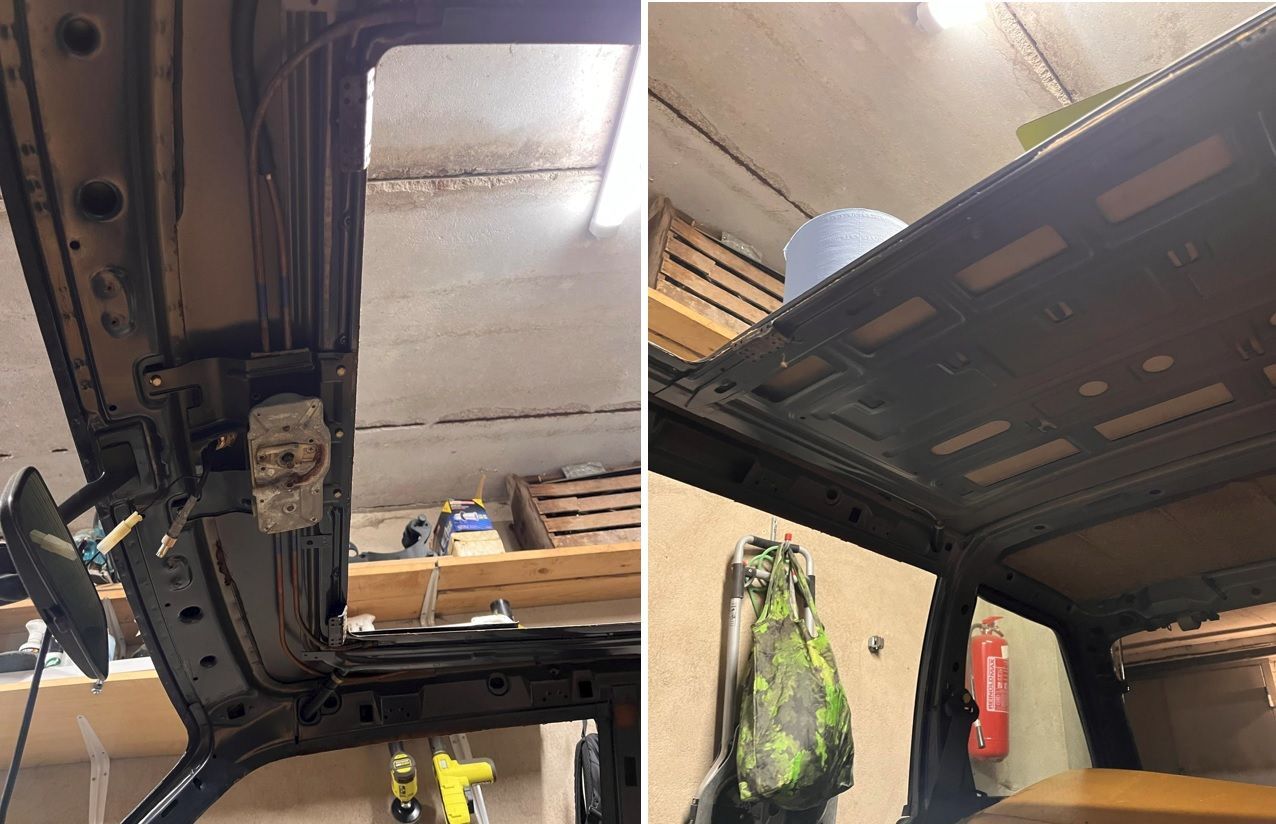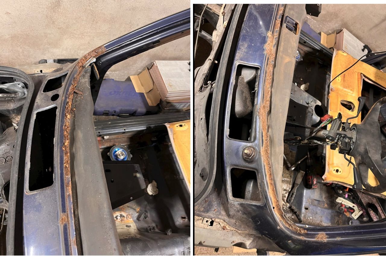 Nädalavahetusel sai natuke jälle möllatud, eemaldasin juhtmestiku, uksed ja laepolstri. Katuseluugi ümbrus on täitsa ilus, kuid üllatus tuli esiklaasi tihendi alt. Selle esiklaasi ümbruse jätan viimaseks keevitamise todo listis. Hetkel pole küll mingit plaani kuidas seda remontima hakata. Kas osta uus tükk, leida kasutatud tükk või hakata seda ise lappima.