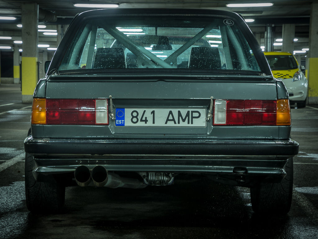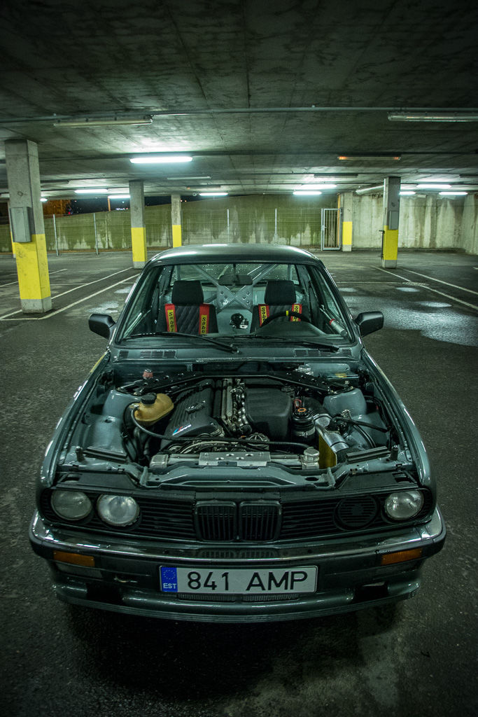 Tegu on 86 aasta preface E30ga mis algselt oli nii halvas seisus, et mõistlik oleks olnud ta pressi alla lükata. Eelmise omaniku poolt tehtud "keretööd" tegid asja veel hullemaks. Nüüdseks pole autol kohta ega nurka mida pole keevitatud või väljavahetatud. Keretööde käigus tuli sisse ka turvakaar. Auto on tänavalegaalne ja ehitatud suunitlusega pühapäeviti rada sõita. Tehasest tulnud 325i, mis sai see aasta vahetatud 2002 E46 M3 pealt pärit S54B32 (256 kW) mootoriga. Hetkel käib originaal ajuga mis sai ülekirjutatud ecuworxiga. Piiraja krutitud 9000RPM. Mootor sai uued BE bearing kepsusaaled, sest see on nende mootorite nõrk koht. Mootori vahetusel oli kindel idee jätta mootori originaal õlipump/õlivann. Seoses sellega tuli mootorit 10cm salongi tuua ja tulemüüri nihutada. Auto kaalujaotust sai ka sellega paremaks. Istub ta m52b28 küljest pärit kasti otsas. Taga on type188 differ ülekandega 4.27 ja suured poolteljed. Alumiiniumist kütusepaak on pagassis ja pumbaks on bosch 044. Tankimisava toodud pagassi külge.Tagasild on reguleeritav, et saada õige camber ja kokkujooks. Sild on jäigalt kereküljes ja õõtsadel on treitud poluplast puksid. Esisillas e36 roolilatt, tagumised õõtsa puksid m3 ekstsentrikud. Auto istub KW v3 coiloveritel. Ees on originaal mtech 1 stange, ülejäänud ring Zender. Selle auto kohta võib liialdamata öelda, built not bought, sest kõik mis võimalik on ise tehtud. Pildid räägivad enda eest. Aega saan siis panen ka ehituse käigust pilte. Kui on kellegil autoehituse kohta küsimusi, vastan meeleldi.- O: 17 veljed