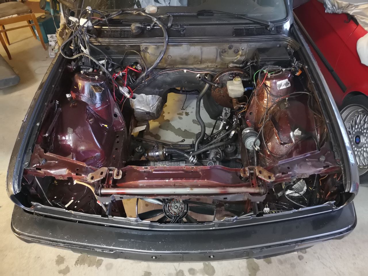 2. Pole päris pikalt siia midagi postitanud, aga see selleks. Auto seisab ilusasti garages. Mootor maas ning laiali võetud, sest suve lõpus tekkis mootorisse "hall ollus" ning jahutusvedelik kadus imeväel. Nüüd sai ette võetud kapotialuse korrastamine, sest auto oli eelnevalt punane ning nüüd värvin kerevärvi. Samuti saab mootor ka kõik uued jupid. Loodan kevadeks ta teedele taas saada. Pikka juttu ei ole, sest nüüd tuleb vaid tegutseda.