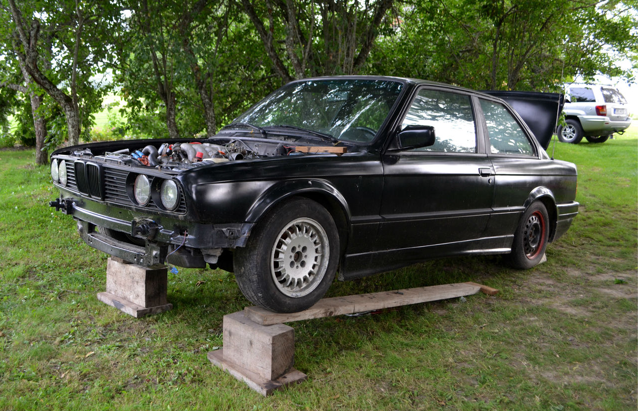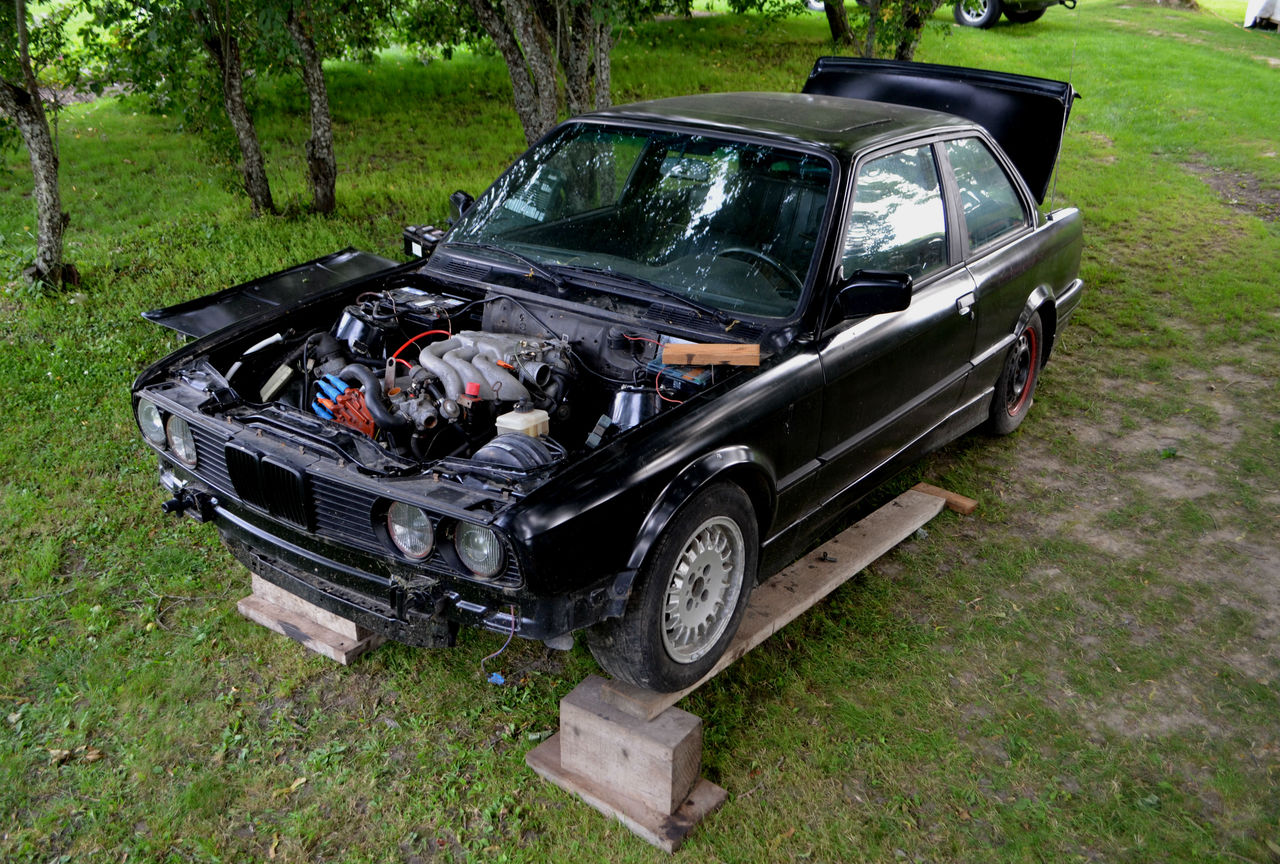 Niisiis.. Sain omale e30'le sobiva karteri kasutaja sauberi käest, tänud talle! Asi sobis ideaalselt ja on küljes (uus alumiinium karter nõudis ka pikemaid polte ning sai need uued ostetud, eelmised olid 16mm, uued 20mm) ning peale seda saigi mootor peale tõstetud. Lisaks sellele sai karteri vahetuse käigus ära puhastatud ka õli võtturi sõel. Käigukasti hoovastik sai külge pandud ja toimib, panime e28'lt pärit hoovastiku (plekkpõhja peal). Käigud lülituvad hästi ning tagurpidi käik lülitub ilma konsooli väänamiseta. Otseselt käima ei jõudnud veel õieti proovidagi, nädalavahetusel peaks juba häält ka kuulma. Hetkel millegi tõttu ei jõua bensupumbani vool, aga starterit ajas natuke ringi juba, seni kuni aku tegi oma viimased hingetõmbed. Pildid: Sander.