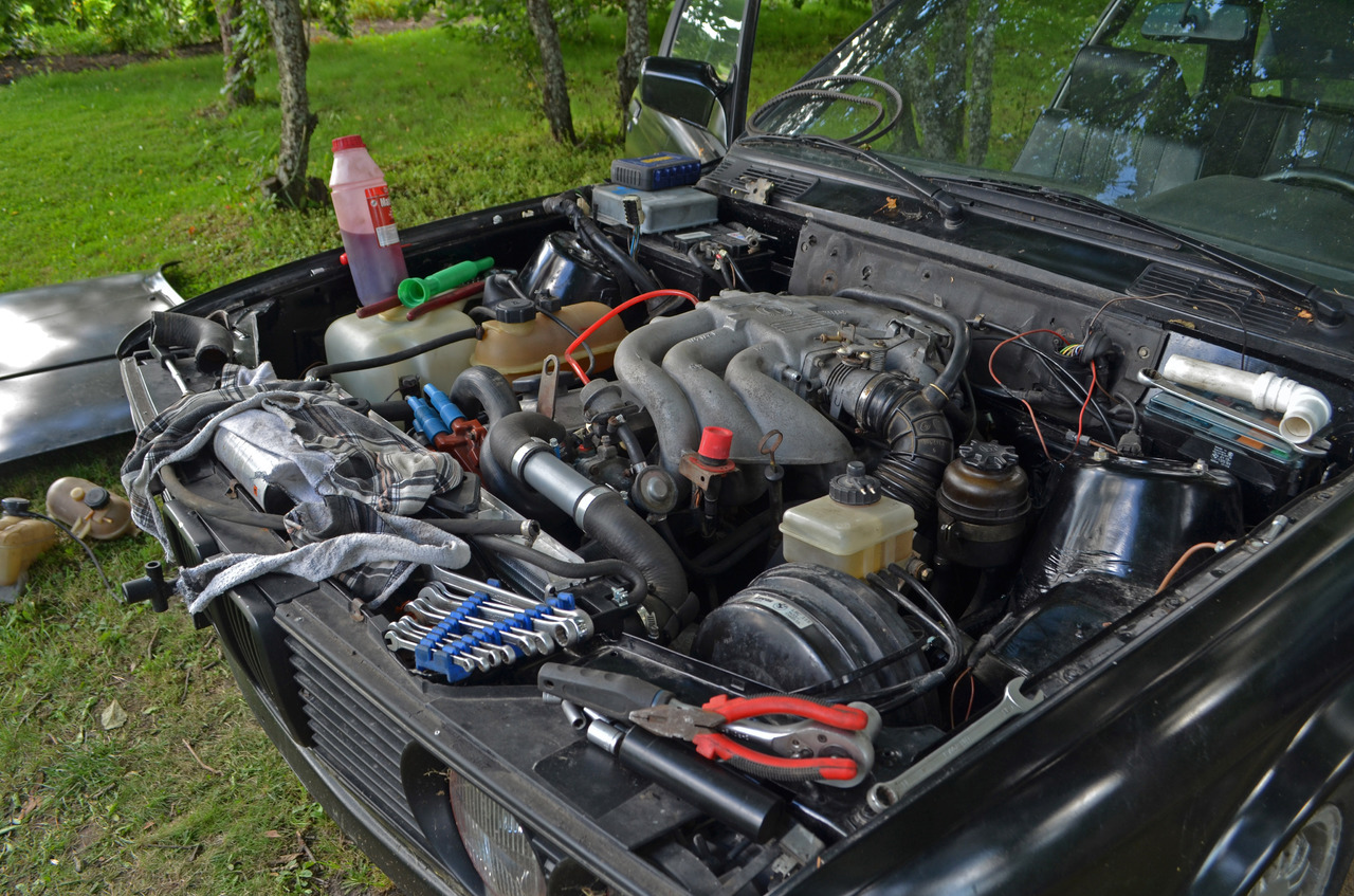 Vahepeal sai kapoti alust ka kokku laotud ja radikas ette pandud, pildid ütlevad rohkem enda eest. Paisupaak sai vanematüübi oma pandud ning kõrvalistuja poole ümber viidud V8 pidurivõimu tõttu. Nagu aru olen saanud, siis siin foorumis on teemaks, et kapoti alune peab ilus puhas olema. Puhastasin endalgi mõned potsikud viisakaks/puhtaks enne peale panekut. Plaanin ka seda reeglit järgida, et kapoti alune ilusti viisakas oleks tulevikus. Tänud GTA'le süütepoolist jagasse minema kaabli eest! Pildid: Edasine plaan leida antud ajule vastav nö. pinout. Kas kõik jookseb õieti ning vajalikud asjad saavad ikkagi toite, oleks tore lõpuks autot käimas ka kuulata. Kohtati ulme kuidas sellel autol juhtmeid lapitud, kellelgi kõlari kaablit tõsiselt palju käes olnud, müstika.. Sinna ka järk-järgult viisakamaid lahendusi leidnud, et midagi maha ei põleks. Sander.