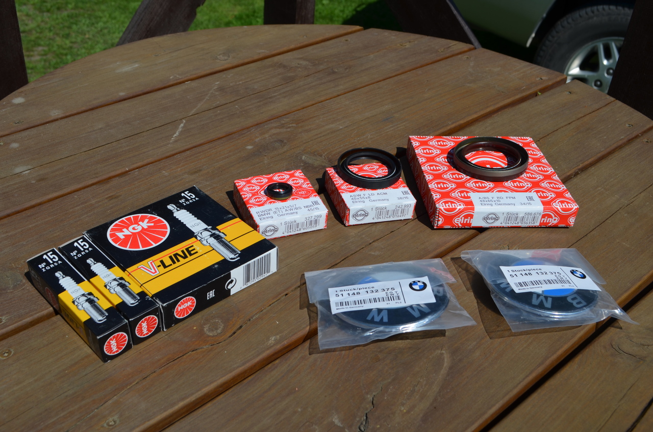 Sai, siis nipet-näpet asju varutud rulli jaoks, mis tulid kingina elukaaslase ja isa poolt. Tänud neile! - Uued küünlad (NGK) - Uus väntvõlli otsatihend (Elring) - Uued käigukasti otsa tihendid (Elring) - Uued embleemid Lähiajal tellin veel jubinaid, siis saab asuda juba mootori kallale.