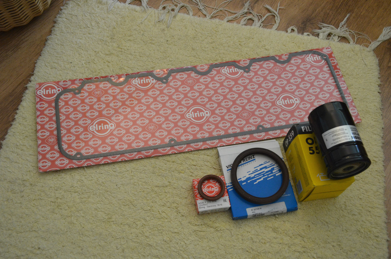Nii lõpuks jõudis pakk minuni. Nüüd peaksid vist kõik vajalikud tihendid jutud olemas olema. - Uus klapikambrikaane tihend (Elring) - Uus õlifilter (Filtron) - Uus käigukastipoolne väntvõlli otsa simmer (Reinz) - Uus nukkvõlli simmer (Elring)