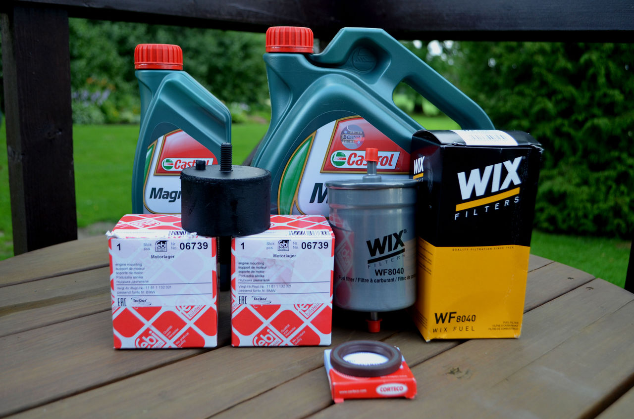 Nii pole ammu kirjutanud, aga nüüdseks Eestis tagasi ja sai nipet-näpet asju varutud ning vahetasin ära ka käigukasti mootori poolse simmeri (nüüd käigukastil kõik uued simmerid). Eile sai hakatud mootorit peale tõstma ning tuli välja, et ei mahugi peale mõnemalt poolt jäi paar sentimeerit puudu, et mootor istuks patjade otsa. Probleem selles, et e28'l ja e30'l on erineva kujuga karteripõhjad, niiet nüüd otsin omale e30 M20 karteripõhja. Ei tulnud üldse selle peale, et selline asi võib probleemiks olla. Ostetud sai siis: - Õli (Castrol Magnatec) - Mootoripadjad (Febi Bilstein) - Kütusefilter (Wix) - Käigukasti mootoripoolne otsa simmer (Corteco) Pilte ka: Niipalju jäi siis mõnemalt poolt puudu: Kui juba mootor peaaegu peal oli Sander.
