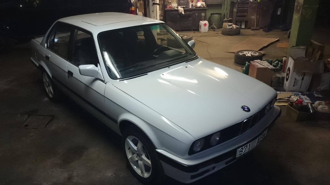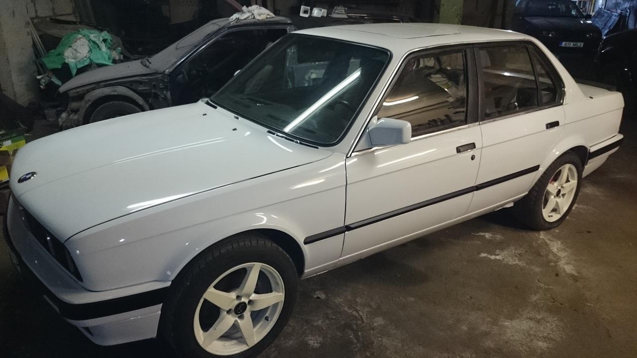 Tervist! Kriban vähe oma liikuri kohta kuna sõber cabrio omanik Pärnust väitis, et teema foorumis pidavat tõstma oluliselt masina aktsiaid. Tegemist siis mikromootoriga sedaan E30 fl-ga. 75kw. Saksast toodud 09.2003a ja siin olnud valdavalt vanema härra kasutuses. Viimane TÜV on olnud masinal 2010 aastal. Ls. on mnt-ameti kodukalt vaadates 211700km. Seda ma ei oska õelda kas läbisõitu enne Eestit on keritud või mitte. Masin oli nagu üks vana E30 olema peab. Tiivad, karbid, katuseluuk ja paljud muud kohad roostes ja ka mõningad augud siinseal. Autol oli ka kesklukk mille otsustasin eemaldada kuna mootorid nägid kahtlased välja. Iseenesest igasugune manuaal tehnika mulle meeldib sellise klassikalise auto puhul rohkem kui elektrooniline. Auto uute velgedega üpris kõrge ja nii see jääbki. See minu kiiks Võimalik, et tulevikus mingisugune jõhvikas ka kapoti alla, aga selleks tuleb ennast veel veidi harida. Õnneks siin foorumis tarkust kuhjaga. Masinal tehtud tööd: Vahetatud on: *parempoolne esisilla õõtsa -kesk sarniir -otsa sarniir -sisemine rooliots -sisemise rooliotsa kaitsekumm -välimine rooliots -stabika varda ots *vasaku poole -sisemine rooliots -sisemise rooliotsa kaitsekumm -välimine rooliots -stabika varda ots -tagalaagrid -parem tagumise piduri survesilinder. -karteripõhi -karteripõhja alumine tihend -mootori õli -taga diffriõli -õlifilter -bensiinifilter -õhufilter -õhutoru (see jäme kummist..) -jagaja kaas -jagaja rootori ots -kõik kõrgepinge kaablid (5) -küünlad (4) *kereplekkidest vahetatud: -uus "esipõll" -uued esitiivad -vasak,parem karbid (täispikkuses) -esiuste alumised servad -keevitatud parem ja vasak tagakoobas -juhi jalgade alune vasak nurk -kõrvalistuja poolne jaglealune nurk. -esi koobaste nurgad vasak,-parem. -aku alune koht -tagumise veoaasa ümbrus -ustesse ja karpidesse on lastud korrosioonitõrjet -kivikaitse kiht -põhjaalune mastiks -uus "esipõlle" alumine plastik servaliist -esiamortide laagrid -esiõõtsade puksid -valged suunatuled -vasaku poole sarniirid -käigukastiõli -generaatoririhm