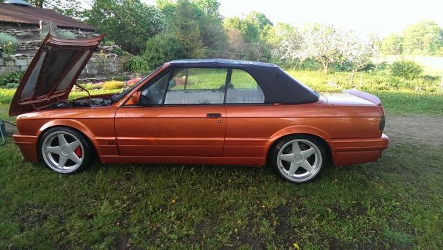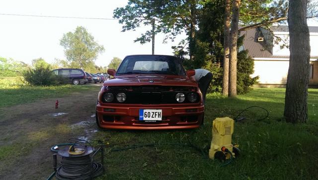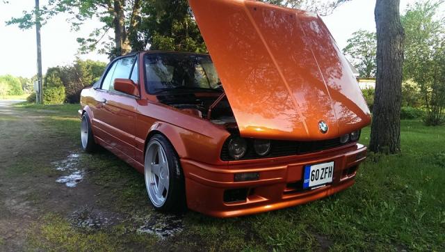 2. Sain siis mina enda valdusesse janni ehitatud cabrio, 21.05 öösel käisin võrus ja tõin taytzi käest koju Saaremaale. Autoks siis e30 cabrio Bmw 320i Cabrio e30 Väljalaske aasta 1989. Mootoriks 2.0 R6 95KW turva- ja ohutusvarustus: roolivõimendi, kesklukustus (puldiga), signalisatsioon (mahuanduriga) mugavusvarustus: 4x elektrilised akende tõstukid, elektrilised välispeeglid, 1x peeglid päikesesirmides sisustus: nahkpolster, sportistmed, 2x istmesoojendused, nahkkattega rool, sportrool rehvid ja veljed: Taga 235/40/17 ja ees 215/40/17 suverehvid, valuveljed (17, Azev Typ A) muu varustus: tagaklaasi soojendus, veokonks (teisaldatav), 5x120 poldivalemiga sillad, Coilover Lorenzer, H&R vedrud, "17" AZEV Typ A veljed "8,5" ja "10" laiad, e36 m3 pidurikettad puuritud(315 mm), 4 kolviga brembo supordid, M Teh II Orginaal stange(esimene), tumedad tuled ees("Hella Black") ja Startec tagumised tuled Tegemist palju, käsipidur korda teha(pole õõtsade küljes plekkegi ja kässari trosse), esiistmed nahatada uuesti, parempoolne esimene piduriketas vahetada, parem esimene õõtsapuks kutu, udukad puudu, pagassi amort väsind jne. Kasutan janni pilte hetkel:)