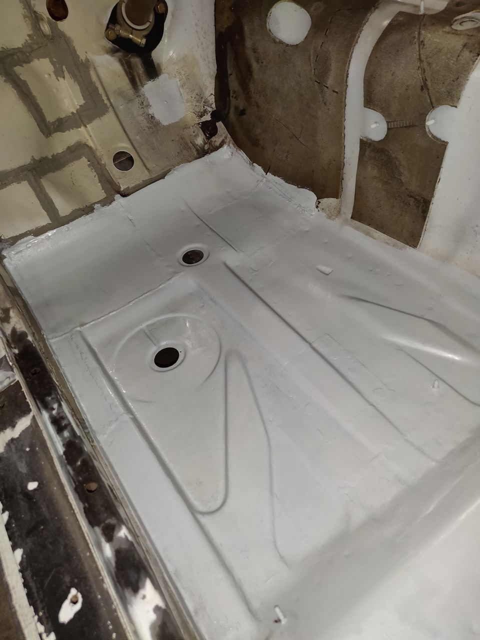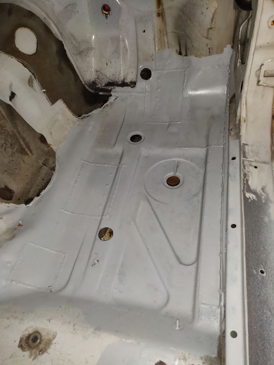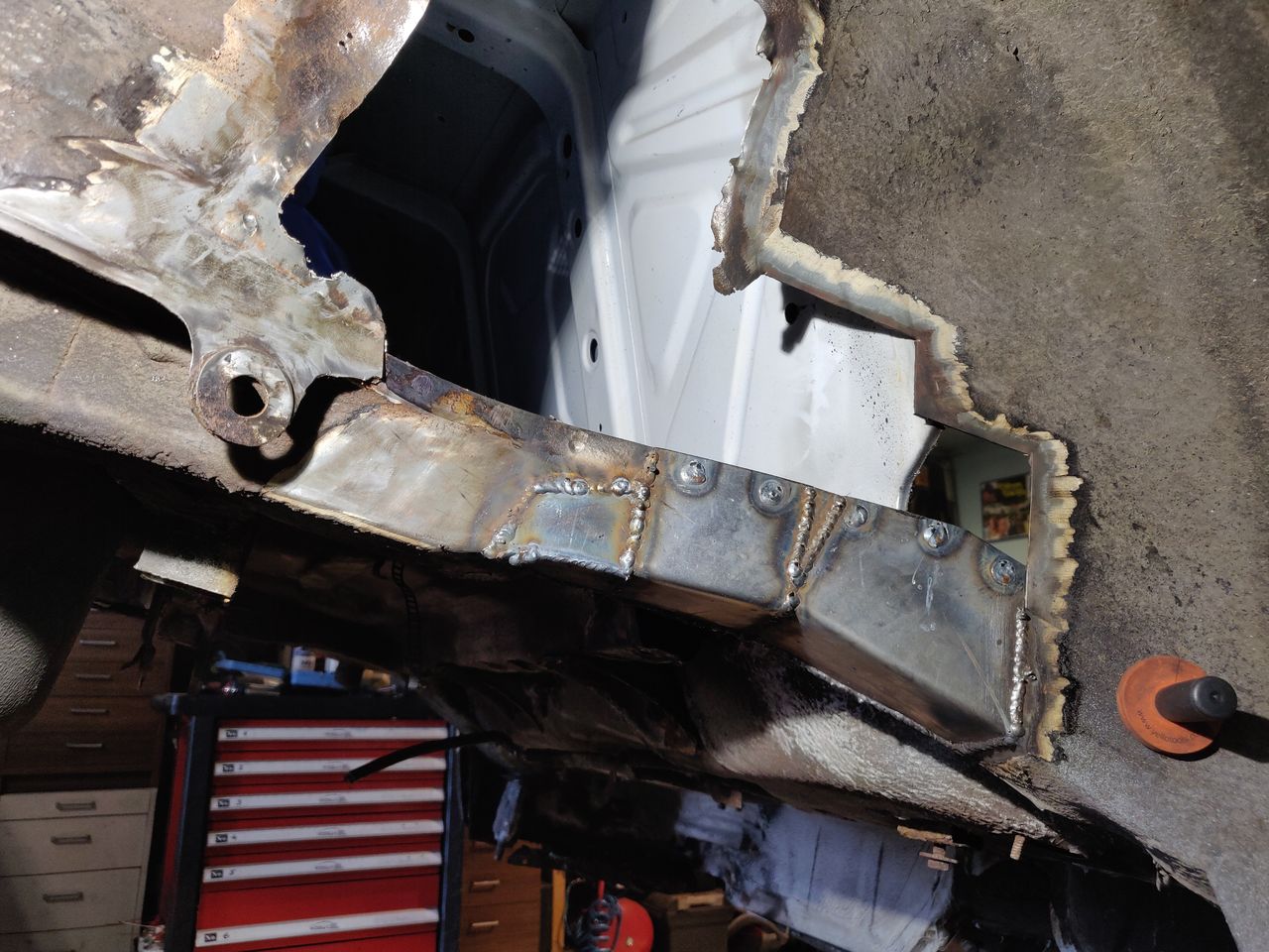 Nii, natuke jälle tööd tehtud. Jalgealus paremalt poolt valmis, juhipoolel veel gaasipedaali kinnitus keevitada, istme ja turvavöö kinnitus keevitada ja tagumine kork paika panna. Parem karp on peaaega valmis, ainult tõstekoha tugi vaja tellida ja külge keevitada. Kapotialune sai ka lõpuks epo krundi alla. Nüüd tahakski need pisiasjad veel ära keevitada ja siis liiguks taha koopasse edasi. Koopaääre lasin ka värvist puhtaks ja otsustasime, et seda hetkel vahetama ei hakka. Pole üldse hullus seisus, ainult natukene pindmist mõnes kohas. Sisemisega on natuke kehvemad lood, seal saab korralikult keevitada. Lisan tehtust ka mõned pildid: