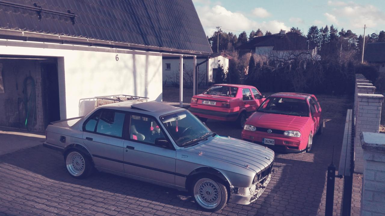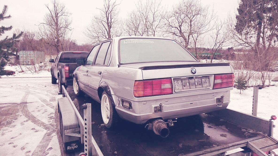 Niisiis sai soetatud e30 sõbra käest, auto oli laksu saanud tagavasakusse nurka ja kere oli 12cm paremal pool. Kui vaatama läksime oli ka radikasse vesi sisse ununenud, sellel hetkel oli -5 kraadi ja kõik oli ära jäätunud. Viisin auto koheselt sooja garaasi ja lasin autol sulada, õnneks midagi hullu polnud lasin vee välja ja panin tosooli sisse ning õhutasin ära, kõik toimis jälle keema ei läinud ja sooja puhus ilusti lõdvikud läksid ka ühtlaselt soojaks nii ülemine kui alumine. Autost siis nii palju et vahele on tõstetud e39 2.8 vanos( m52b28) lisaks on peal chip ja kütus ette annet suurendatud, veel on peale paigaldatud m50 sisselase. Seest on auto tühjaks visatud, põhjamatt eemaldatud, korvid sisse pandud, tagant on tagaistujaselja toe plekk ära lõigatud nind strutbar nii ette kui taha pandud. Pagassi põhi on ka sirgeks lõigatud, et kilosid vähendada. Sillad on stockid. Differ on type 188 4.27 ülekandega ja plokki keevitatud. Kere poolepealt juba tehtud nii palju, et kere sirgendus pingus käinud ning uue tagumendi saanud omald. Plaanis on ülevärv teha ja kui kere poolne osa on 5+ siis tahaks ka fööni vahele panna.