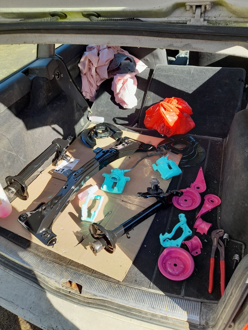 Mingi aeg sai uus kõrgsurve pump külge pandud. Peale seda läks kohe põhja alune pump. Paak oli rauapuru täis ilmselt sellest. Läks siis uus põhjaalune pump. Vahepaeal hakkas vasak esimene rattalaager häält tegema. Sai see ka ära vahetatud. Siis hakkas roolilatt lekkima, läks e36 roolilatt koos uute rooli otsadega. Ette panin tutikad rehvid ja sillastendi. Taha sai uus pütt pandud muidu lärmas liiga hullult.