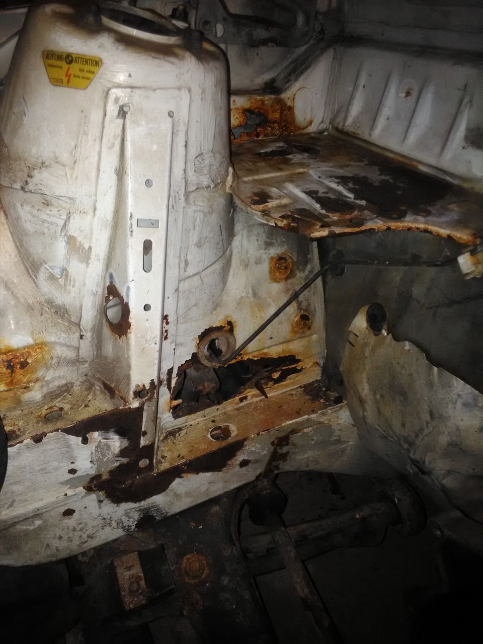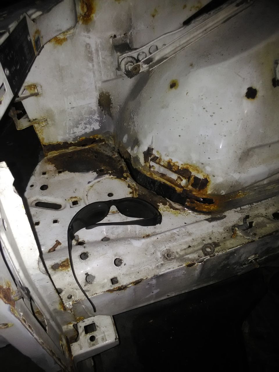 Enamus rooste on õnneks pindmine, 6 auku lugesin kokku kere pealt. aga küljekarbid on jube koledas seisus, tuli küljest nagu paber.