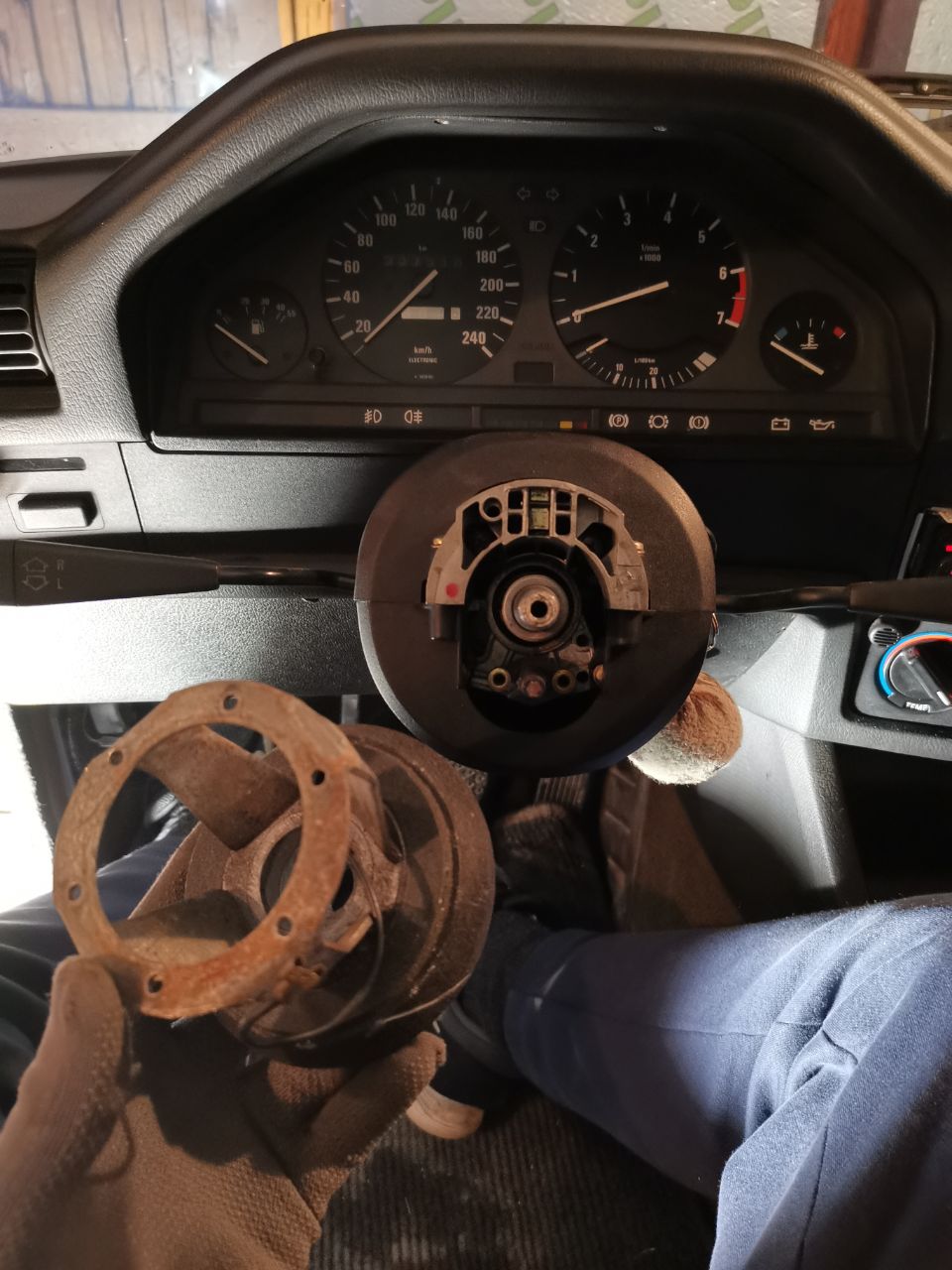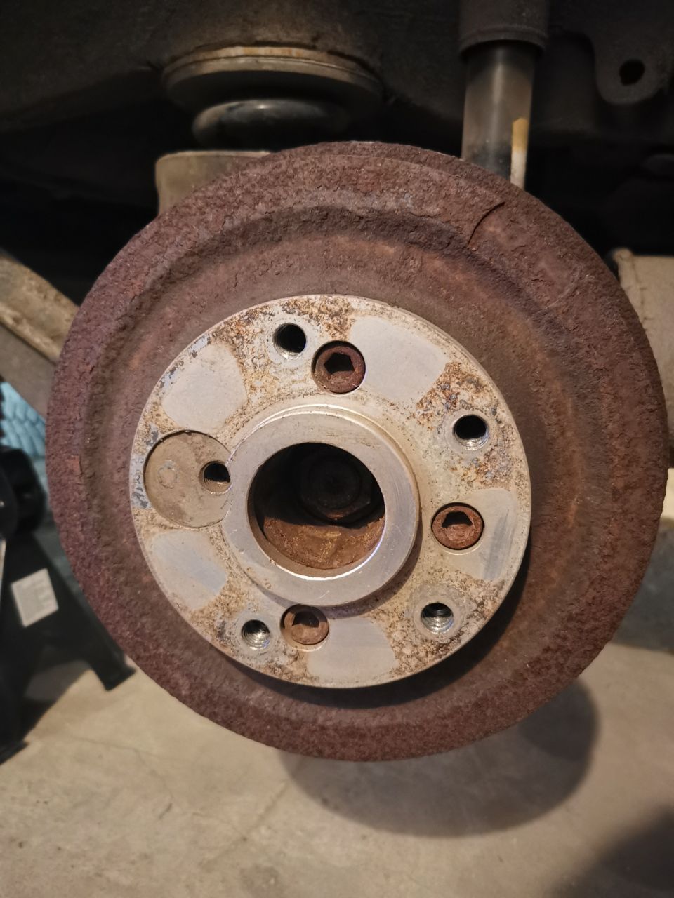 Rooliga sai ühele poole. Tuli välja, et keskmine naha osa rooli pealt käib ära ja keskmist embleemi polnud eraldi vaja välja kangutadagi. 😀 Vahetükk oli küll suht tummiselt kinni, pidi üksjagu koputama ümberringi, aga kätte ta sain. Panin rooli külge tagasi. Enam vähem nii, kuidas kõige otsem tundus. Sai suht hea ma arvan, aga eks kunagi sõites näha ole. Garaaž sai käepäraste materjalidega "soojemaks". Hankisin endale tungi ja pukad ning rull läks pukkadele, et ka altpoolt eluoluga rohkem tutvuda. Lisaks sai rääbakas kuuseke välja visatud ja nö jõulukuusk garaažiteemalisemaks muudetud. Ühtlasi hoiab ruumi kokku. 😀 Eelmine omanik ütles ka, et flantsid vahel, sest veljed 5x120. Nüüd nägin ise ka ära. Kellegi isetehtud flantsid ilmselt, kuna neljast veljest 1 oli ainult viie poldiga kinni, ülejäänutel 4, viimane auk ei kattunud piisavalt hästi, et oleks saanud sinna poldi sisse keerata. 😀 Järgmisel pildil näha, et sellel konkreetselt flantsil üldse üks auk tunduvalt seespool, ning ei kattu ei 4x100 ega ka 5x120. 😀 Tulevikus peaks niikuinii 5x120 peale ümber tegema, nii et see mind ei kurvasta. Paar kaadrit veel, mis telefonist leidsin. Muud huvitavat praegu pole. Ilusaid pühi!