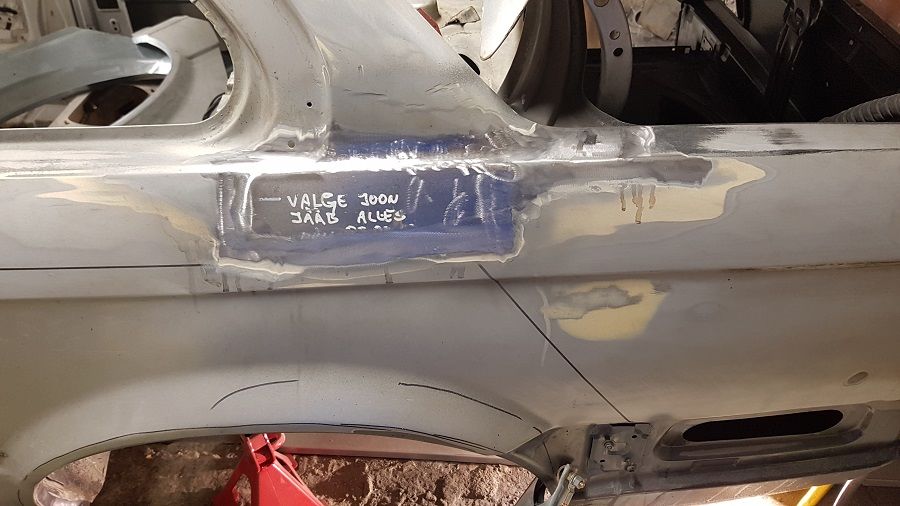 Tasa ja targu hakkab tagaosa kokku minema. Vasakpoolse tiiva peal oli uss liiga sügavale läinud ning tuli ära lappida kuna seda tiiba pole enam saada. Korralikult lögaga kokku, et ennem värvimist rooste ei läheks. Terav silm peaks ära nägema et valtsi kohast tiba laines. Selle sai ka kenasti korda seest poolt. Hiljem panen pildid sirgest joonest. Kaasreisija poolne nurk hakkab kuju võtma. Vaja veel korda teha rattakoopa välimine kaar. Lisaks jõudis minuni õige kubatuuriga mootor, 4.4L. Hetkel mootori metalli osa tegema ei hakka kuid vahetusse lähevad kõik põhilised tihendid.