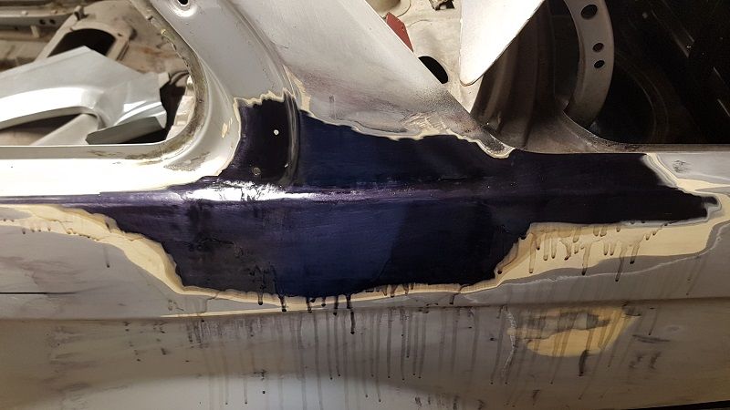 Kui sa mõtled seda löga siis see tegelikult musta värvi. Sinine dressipluus oli seljas ja kuidagi peegeldas. Muidu kasutan Brunoxit ja Würthi roostesurma.