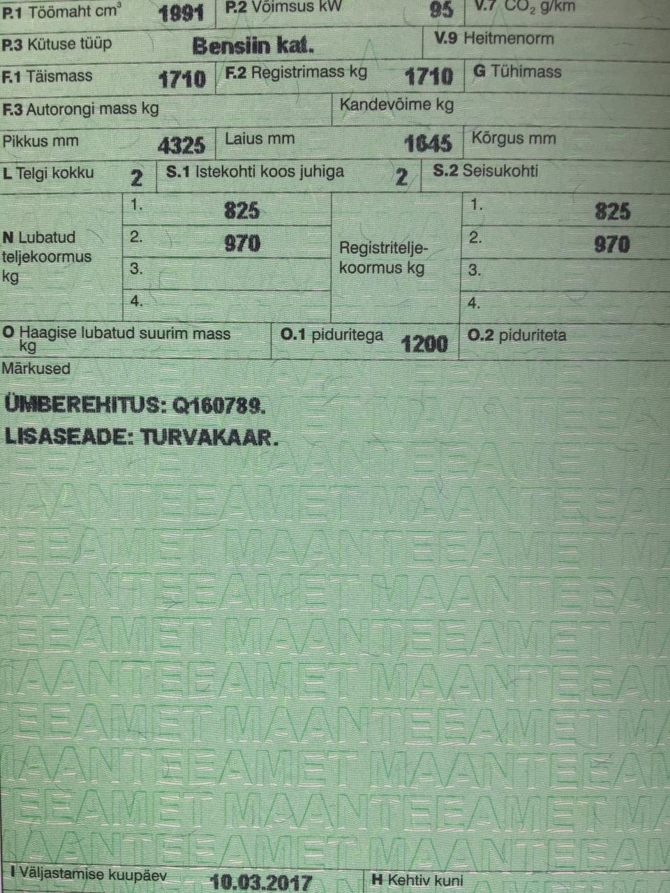 Tervist! Väike update teemale midagi suurt autoga toimunud hetkel pole,kuid õnneks sain dokumendid autol nüüd korda ja sain passi märke ümberehitus ja lisaseade turvakaar. Ise usukusin ,et saab korralikult jebimist sellega kuuldud juttude põhjal aga õnneks nii ei läinud ja kogu protsess kestis 15-20 minutid koos dokkide vormistamisega nii,et võib rahule jääda. Nüüd saab uuesti autot lammutama hakata ja keretöödega alustada ja edasine tuleb step by step. Seniks kõik