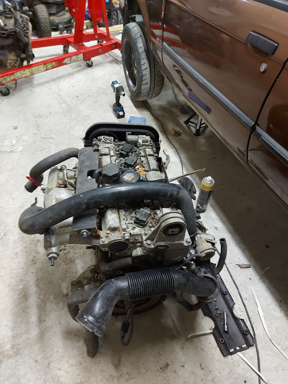 Siin päris pikalt vaikus olnud. Ideid lendab nagu lehti sügistormi ajal. Loobusin oma m20 turbotamise mõttest, aga... Käeulatusse sattus hoopis volvo turbomootor. Ega pikalt ei mõelnudki, paadiankur maha ja nyyd tuleb hakata Rootsi rauda peale aretama. Hea oleks kui svenssonid nyyd käigukasti adapteri kah siiapoole saadaks😁.