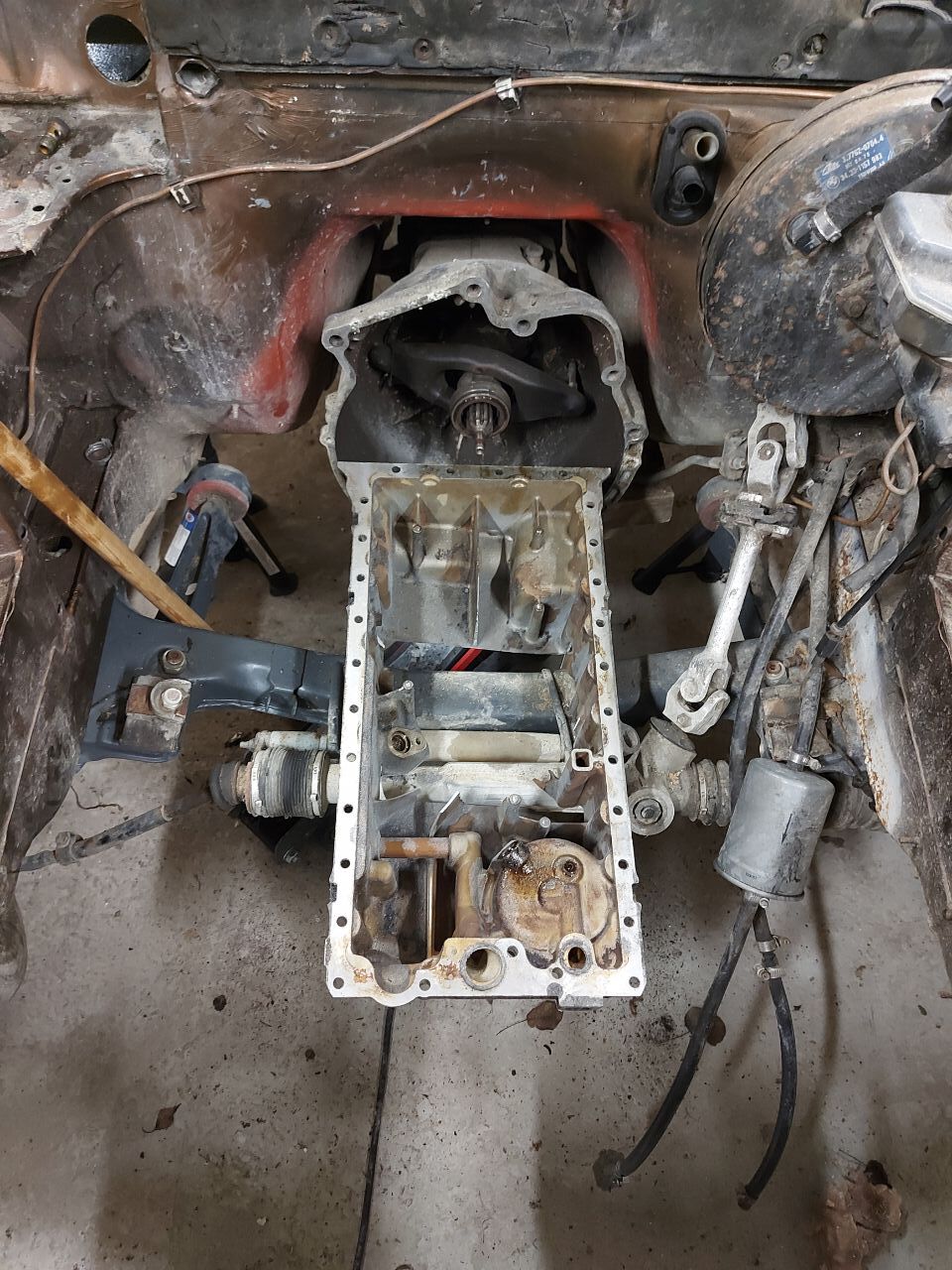 Sai siis täna uus mootor peale tõstetud ja nh... esiveduse risti mootori peale aretamine pikimootoriga tagavedusele on ikka paras kemüüse. Tõenäoliselt tuleb terve karteripõhi ringi teha. Kõige lõbusam on see, et õlifilter ja õlijahuti on karteri külge ehitatud🥴. Mootorit on vaja ca 10-13cm allapoole saada. Mis tähendab sisuliselt, et sillatala on vastu plokki.